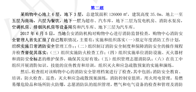 2017一级消防工程师《消防案例分析》真题及答案(最新文字版)(2)