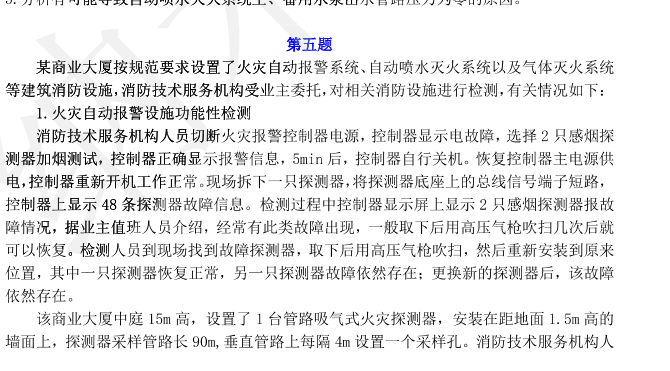 2017一级消防工程师《消防案例分析》真题及答案(最新文字版)(7)