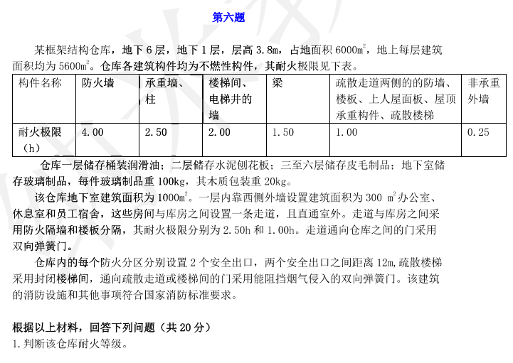 2017一级消防工程师《消防案例分析》真题及答案(最新文字版)(9)
