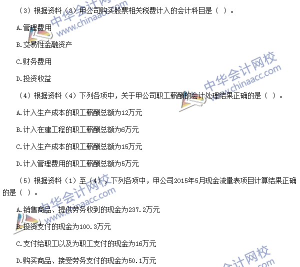 (3)【点评】该题考核交易性金融资产的取得。该知识点与考前模拟试题(二)单选题第2题、考前模拟试题(二)不定项第1题、考前预测卷(一)多选第2题的考点基本相同。