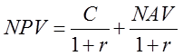 B 、 NPV=C+NAV C 、