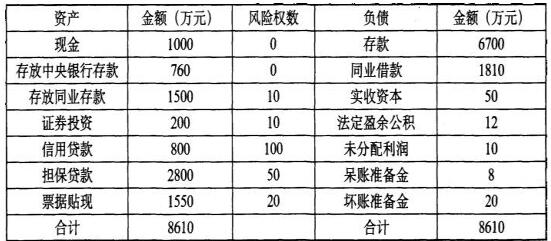 我国某商业银行的资产负债表如下,