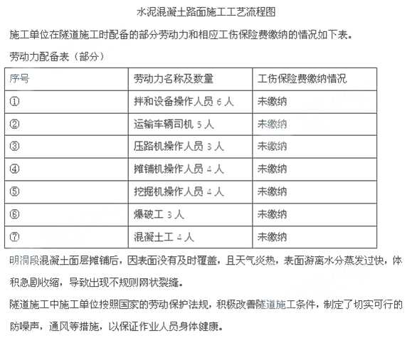 某施工单位承接两座单洞分离式隧道施工任务,左线讫桩号为ZK10+308、ZK10+788,右线起讫桩号为YK10+264、YK10+776两 隧道均为瓦斯隧道,且围岩富含有害矿物质。根据设计要求,隧道洞内路面采用水泥混凝土刚性路面,路面结构自上面下分别为:24cm厚 C25水泥混凝土上面层、20cm厚C20水泥混凝土基层、10cm厚C15水泥混凝土调平层,水泥混凝土路面施工工艺流程如下图指示。