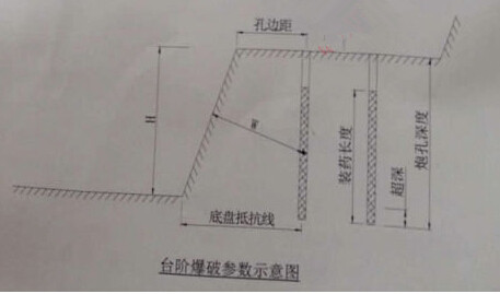 4、H为台阶高度,W为最小抵抗线。(装药重心到自由面的最短距离)