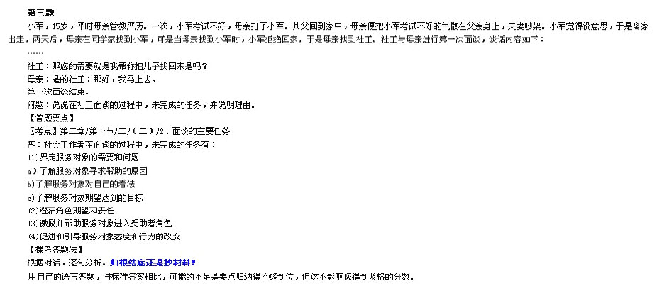 社会工作者与小军的母亲进行了第一次面谈,主要对话内容如下: