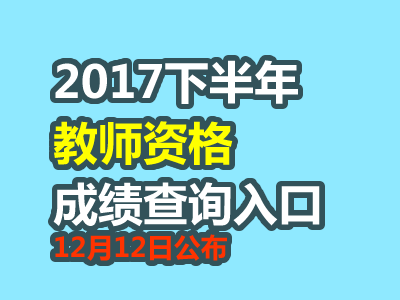 2017下半年中小学教师资格证考试成绩查询入口将于12月12日开通,考生可登陆中小学教师资格考试网查询本人笔试成绩。