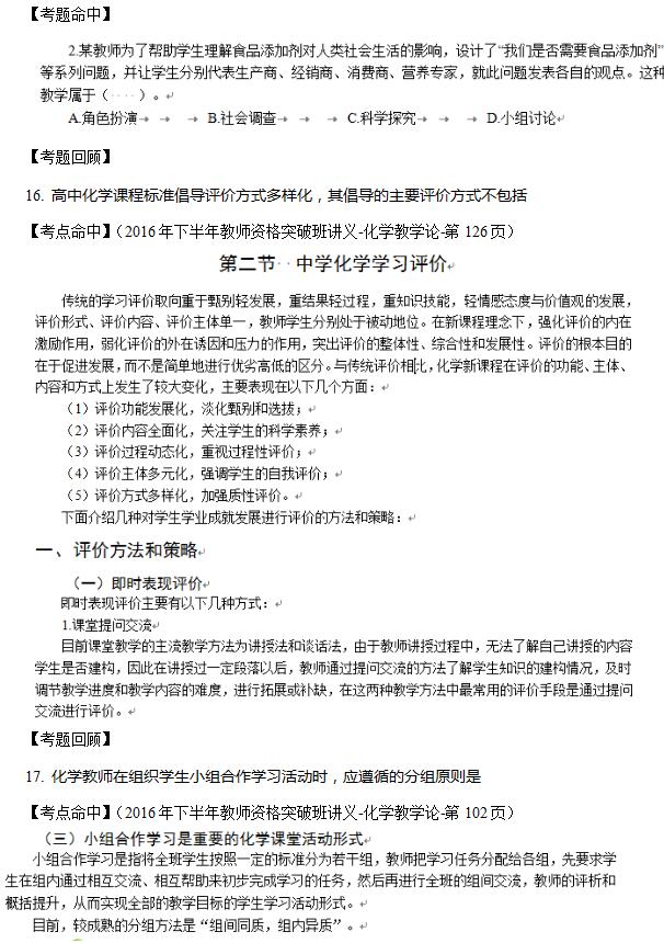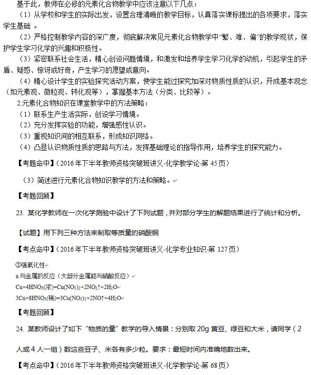 2016年下半年教师资格(高中化学)真题及答案(文字版)(5)