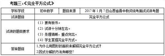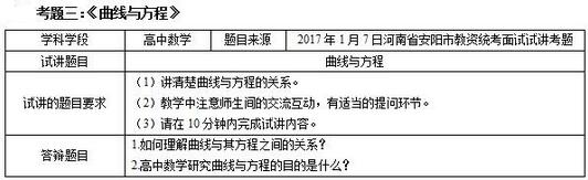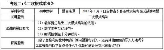 2016年下半年教师资格证面试考试于1月7日起开考,以下为本次数学教师资格证面试考题。