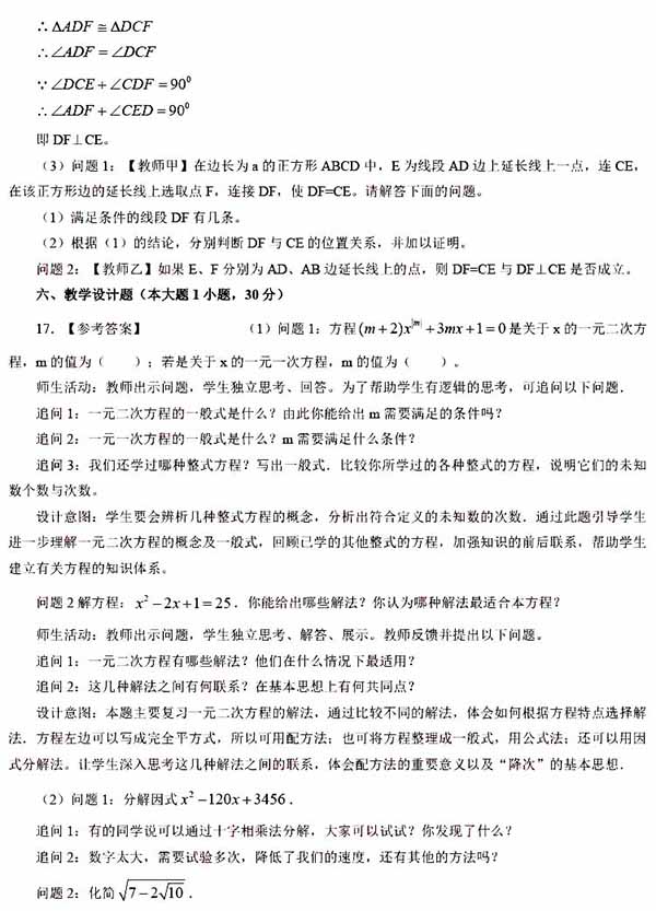 2017上半年教师资格学科知识与教学能力真题:初中数学(5)