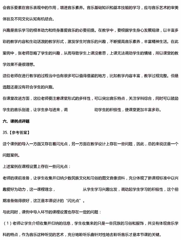 2017上半年教师资格学科知识与教学能力真题答案:初中音乐(4)