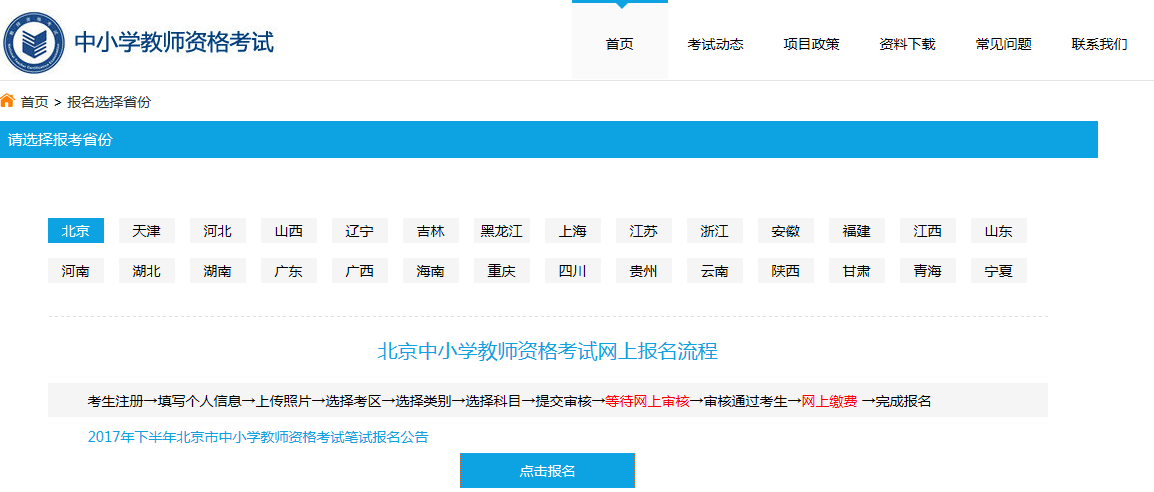③点击在线报名。进入报名系统后,选择自己所在的省份,点击报名。