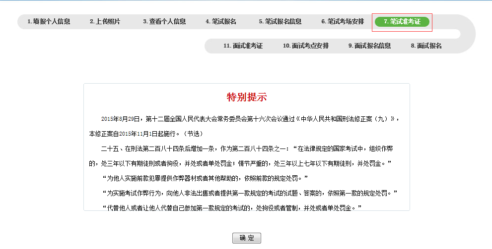 ⑤下载。登陆进来后,点击第七步“笔试准考证”,然后根据提示下载pdf准考证文件。
