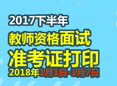 下载、打印面试准考证,时间:2018年1月1日-1月7日。考生登录教育部中小学教师资格考试网(http://www.ntce.cn)下载打印。