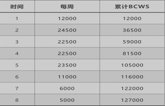 1、分别计算每周计划工作预算费用(BCWS)。