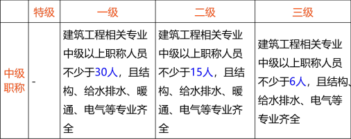 C.建筑工程、机电工程专业注册建造师合计不少于9人,其中建筑工程专业建造师不少于6人