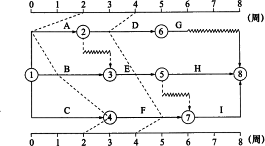 某项目时标网络计划第2、4周末实际进度前锋线如图所示。关于该项目进度情况的说法。正确的有( )。