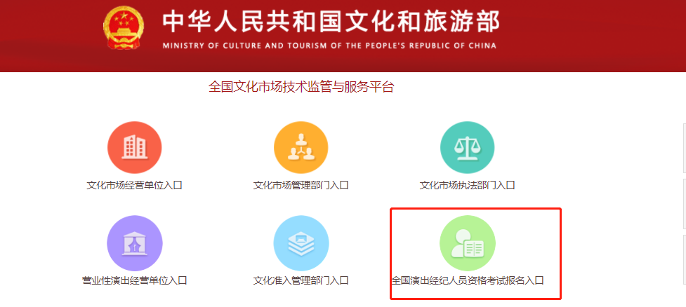 【平台名称】全国文化市场技术监管与服务平台-演出经纪人员资格认定考试报名平台