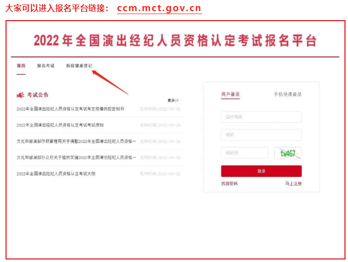2、9月10日之前登录报名网站,在防疫健康登记模块确认《考生健康承诺书》,及查看报名网站上发布的疫情防控告知书,并遵照执行。
