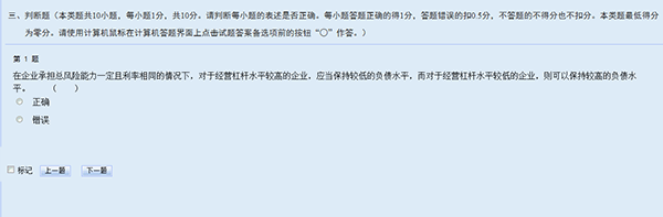 判断题答题时,考生直接用鼠标点击备选项中认为正确的选项前的按钮即可。如需修改答案,用鼠标点击其他备选项前的按钮,原选择的选项将被自动替换。如需撤销已经选中的选项,再次点击该选项前的按钮即可。