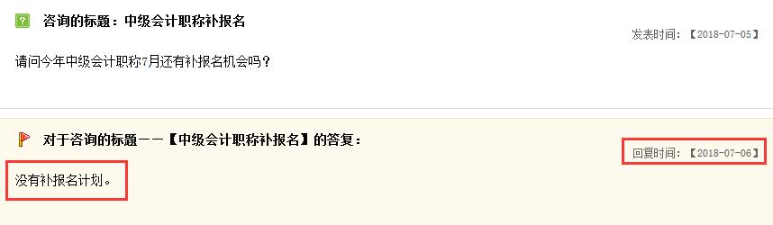 考生咨询问题:请问今年中级会计职称7月还有补报名机会吗?