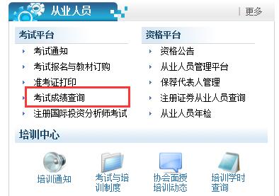 答:一:登录中国证券业协会,如果是已有证书,在左边有个“从业人员执业注册信息公示”,其中有按姓名、证件号码可以查询;如果现在没有证,只是成绩合格,就在首页右边有个考试成绩查询,证券从业人员资格考试成绩查询 ,输身份证号就可以。